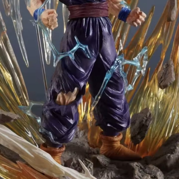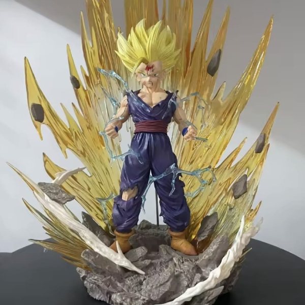 This isn’t just a figure; it’s a centerpiece. This statue masterfully recreates the moment Gohan snaps, transcending his limits to achieve the Super Saiyan 2 form. With blood-splattered battle damage and a massive energy aura, it perfectly captures the raw intensity and “quiet fury” of the young hero.