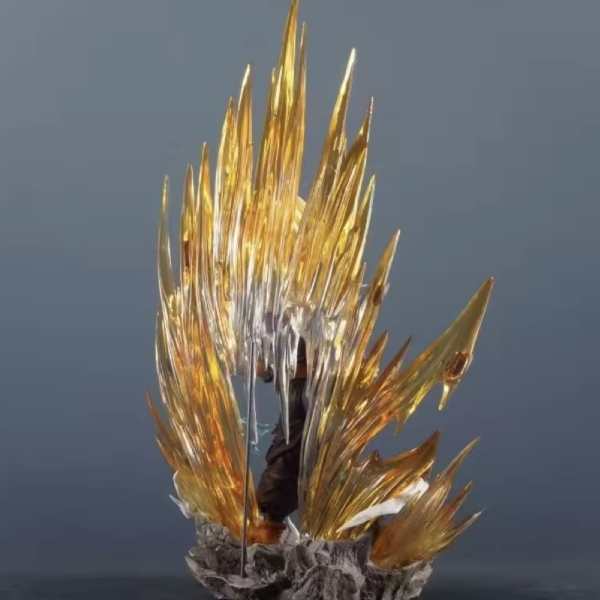 Base: The figure stands on a highly detailed, rocky wasteland base with “floating” debris, enhancing the sense of incredible power surging from the character.