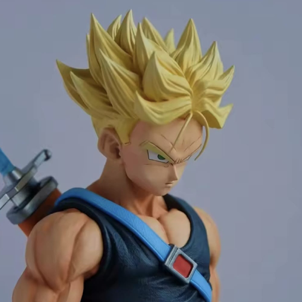 This statue of Future Trunks from Dragon Ball Z/Super captures the Hope of the Future in exquisite detail. Designed for collectors or as a gift for a fan this figure showcases Trunks in his classic sleeveless combat gear, ready to face any threat to his timeline.