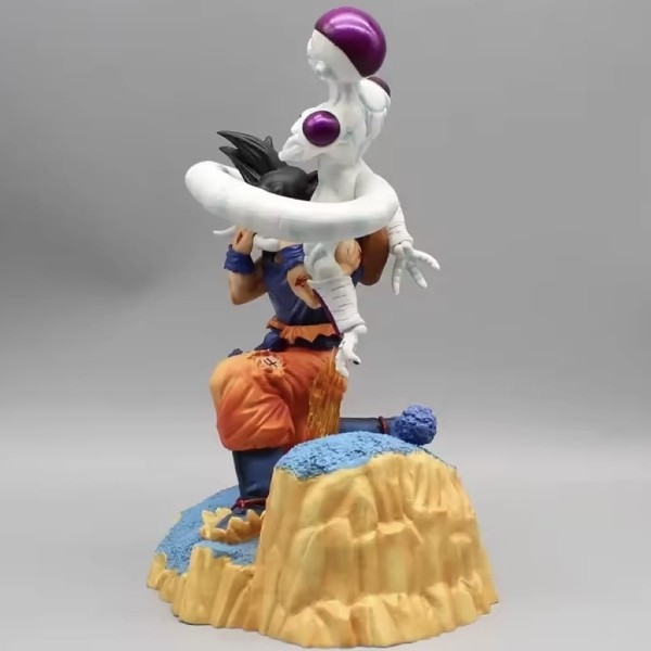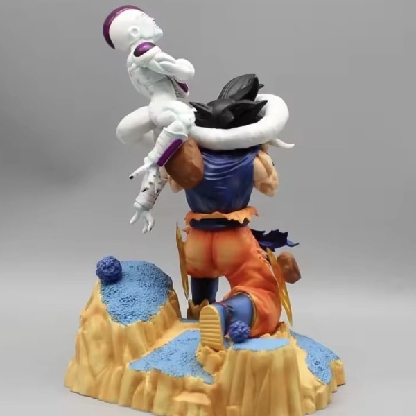 ​This masterfully crafted diorama brings to life the brutal final struggle on Planet Namek. It depicts Goku in his base form, locked in a desperate struggle as Final Form Frieza attempts to crush him with his powerful tail. This isn’t just a figure; it’s a frozen moment of cinematic tension.