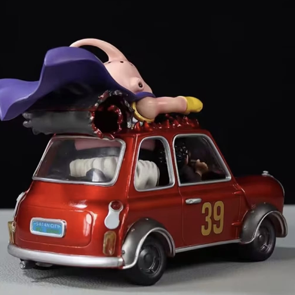Capture the moment the world’s strongest (and luckiest) man tamed the pink terror! This highly detailed collectible features Majin Buu bursting through the roof of a classic red rally car, cape billowing in the wind, while a determined Mr. Satan takes the wheel. It’s a standout piece that perfectly captures the playful spirit of the Buu Saga.