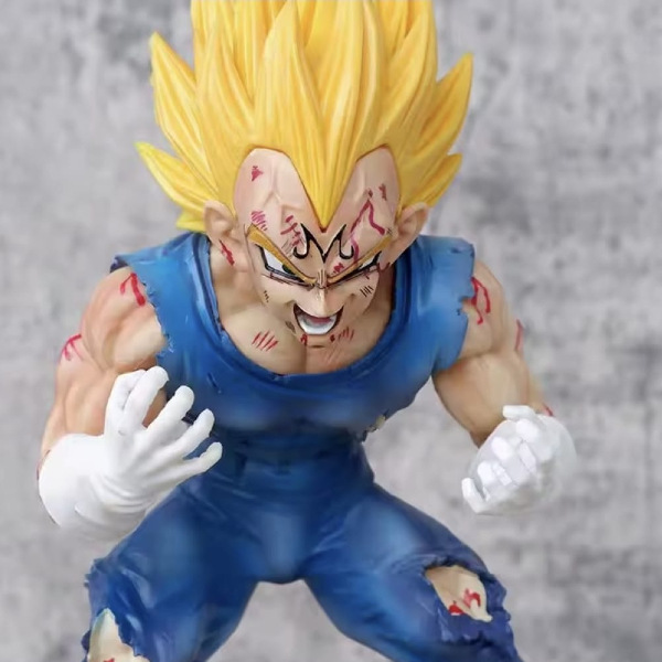 This high-detail collectible captures Majin Vegeta in his most raw and powerful state. After succumbing to Babidi’s spell to unlock his true Saiyan ruthlessness, Vegeta is depicted here in the heat of battle—bloodied, battered, but possessing an unbreakable will.