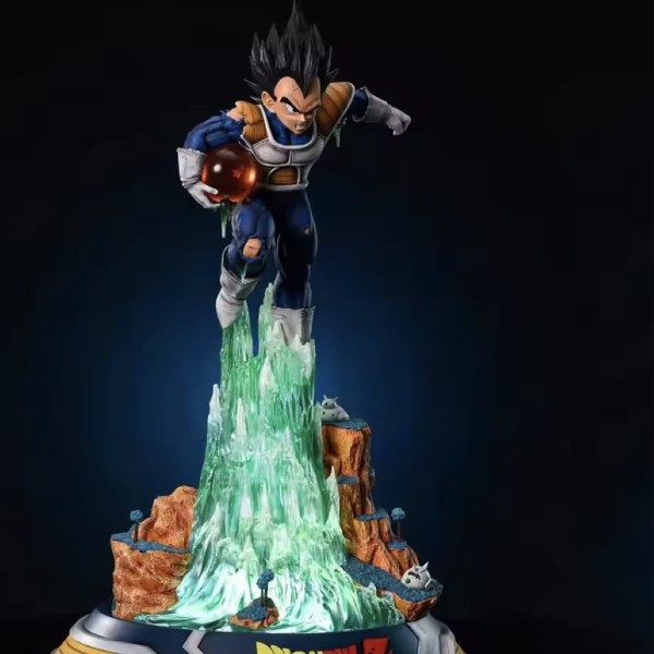 That is an incredible statue! It captures one of the most iconic moments from the Namek Saga—Vegeta making his desperate, calculated getaway with a Dragon Ball.